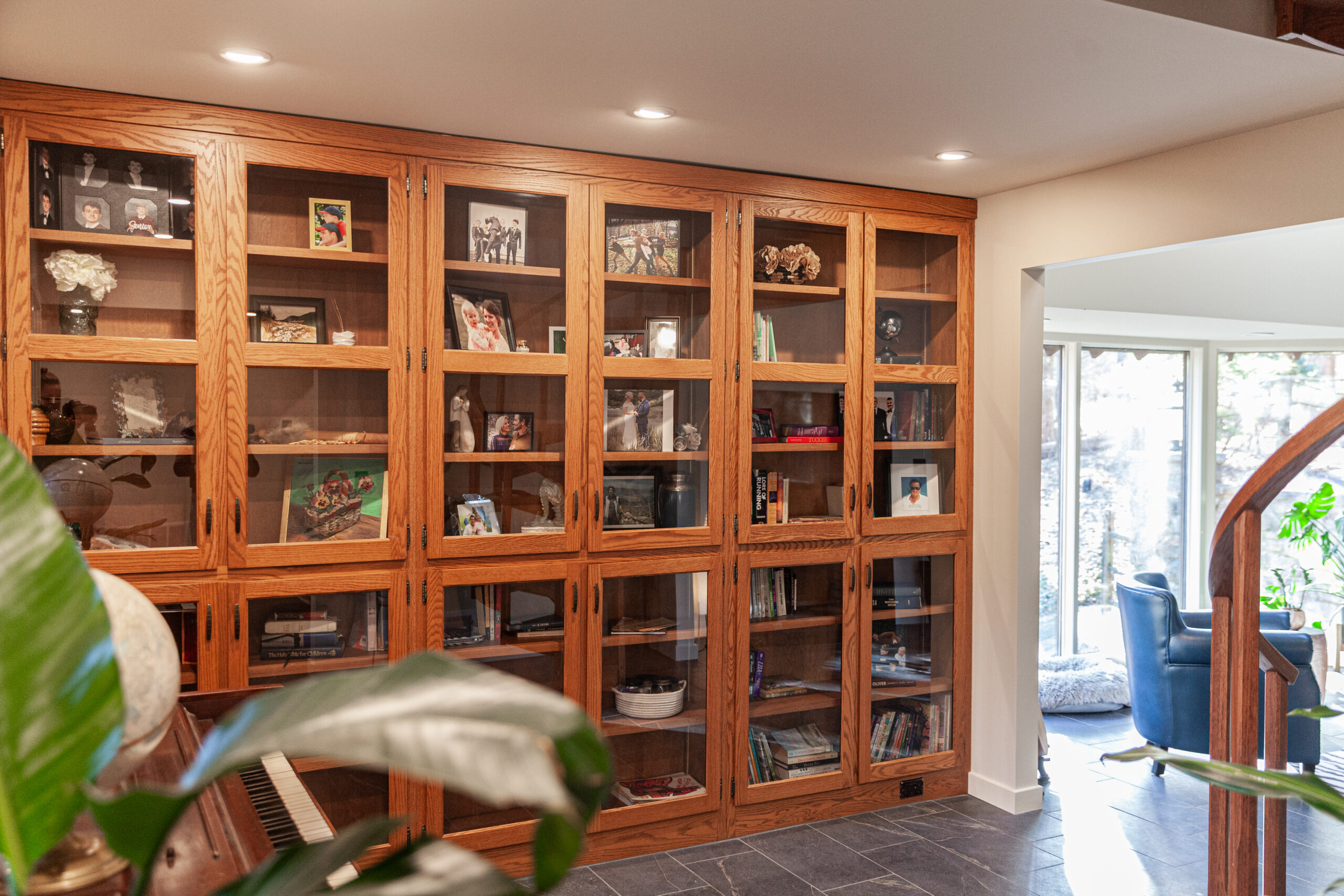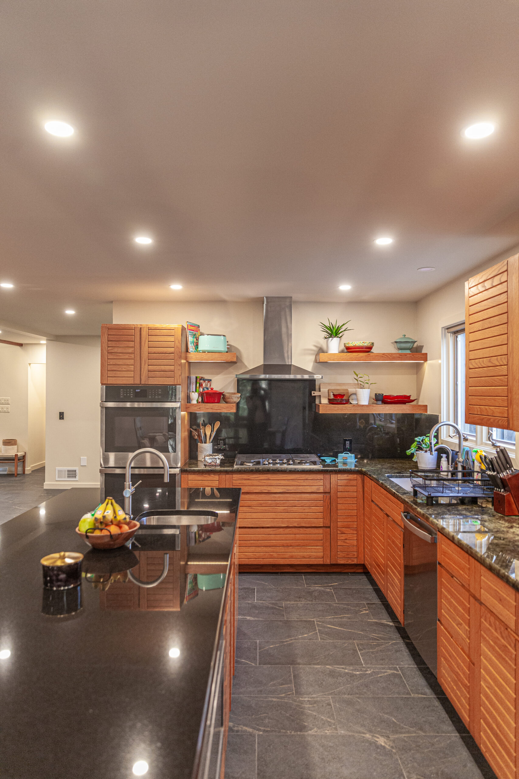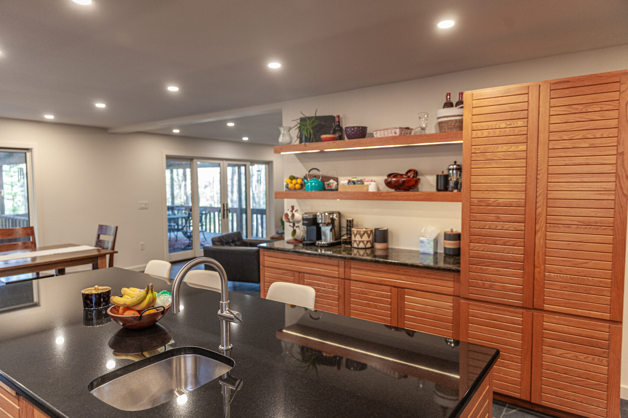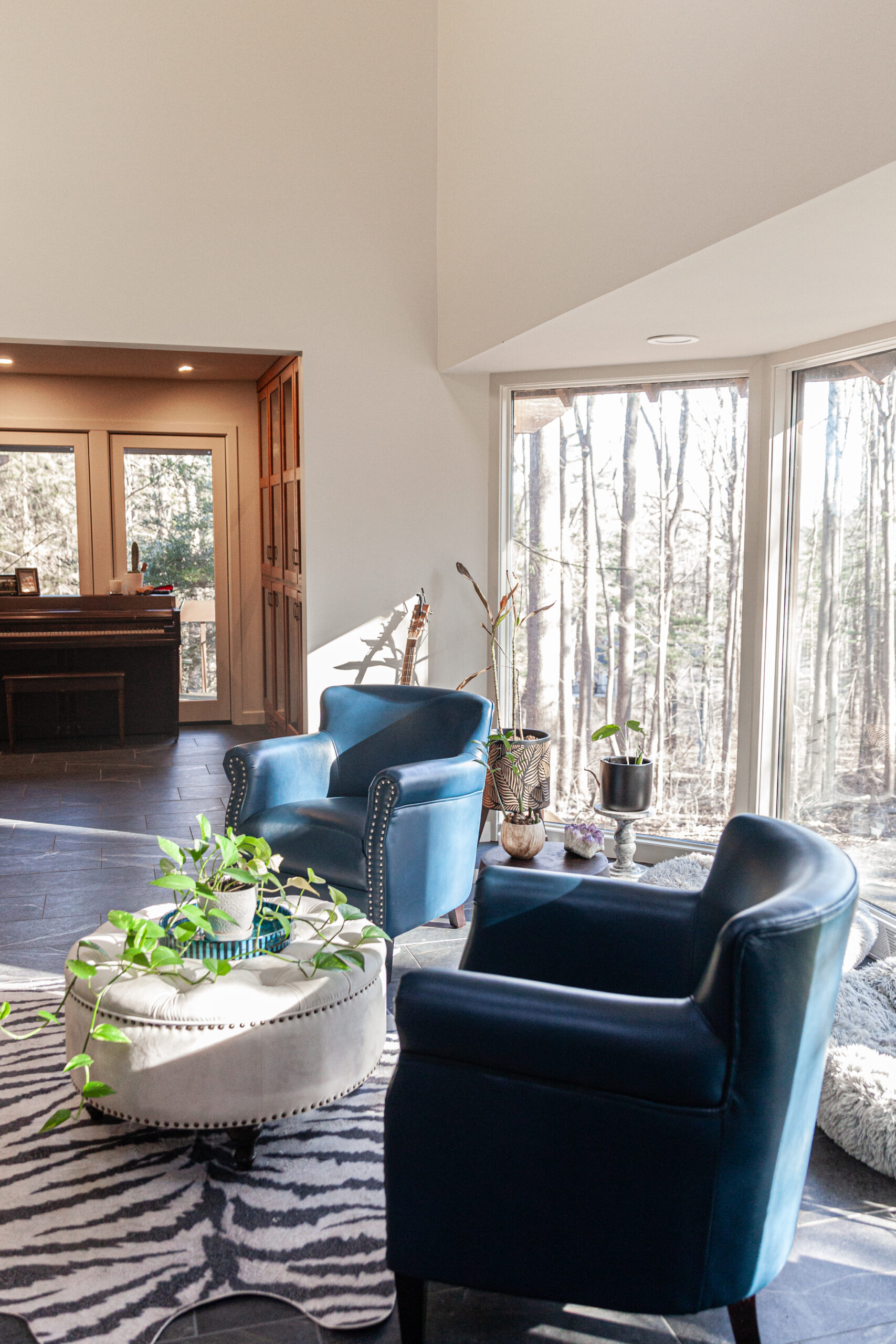 The homeowners already loved the Frank Lloyd Wright-inspired style and the gorgeous landscape around the home—they just wanted the inside to match that same feeling.